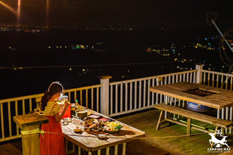 坐在帳內的沙發,就可以看到整座城市的夜色燈火,雲海若隱若現,遠方的山巒像水墨畫一樣層疊展開。